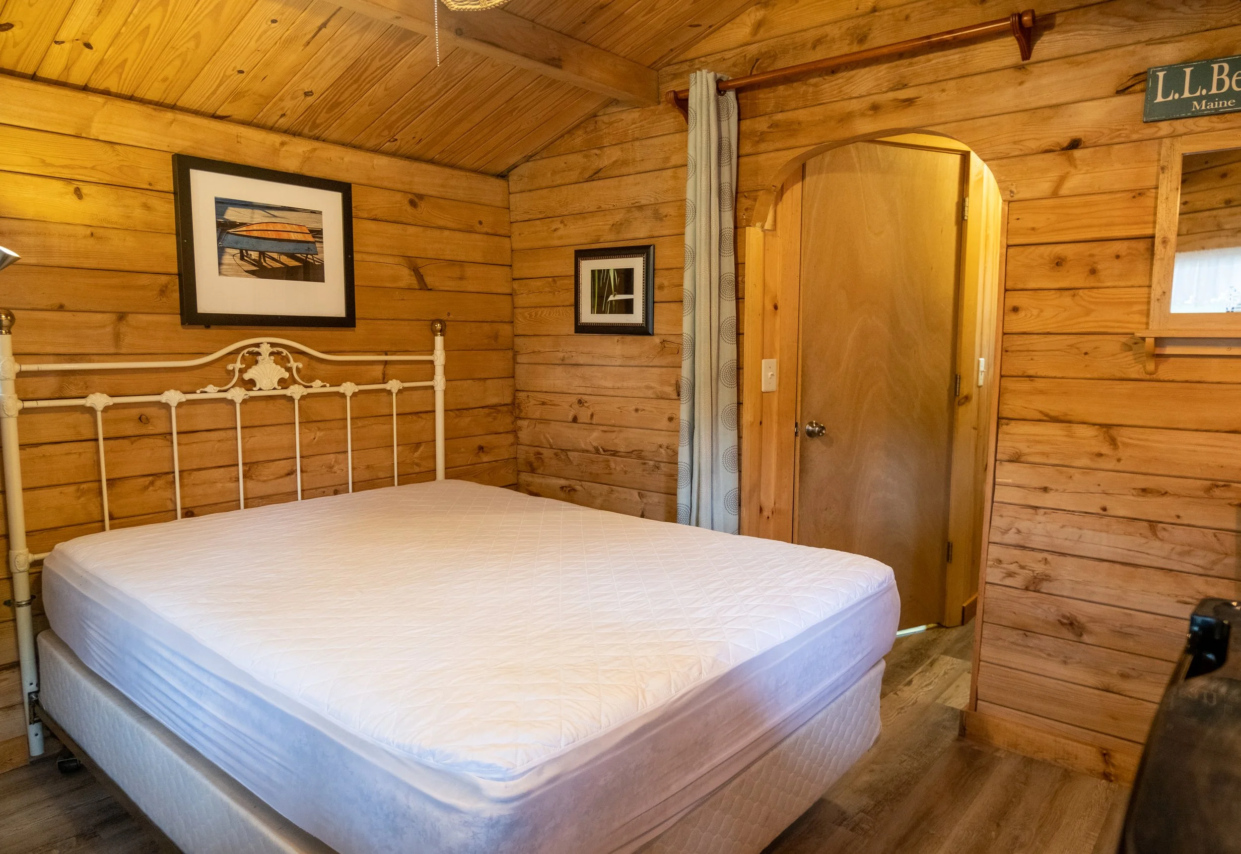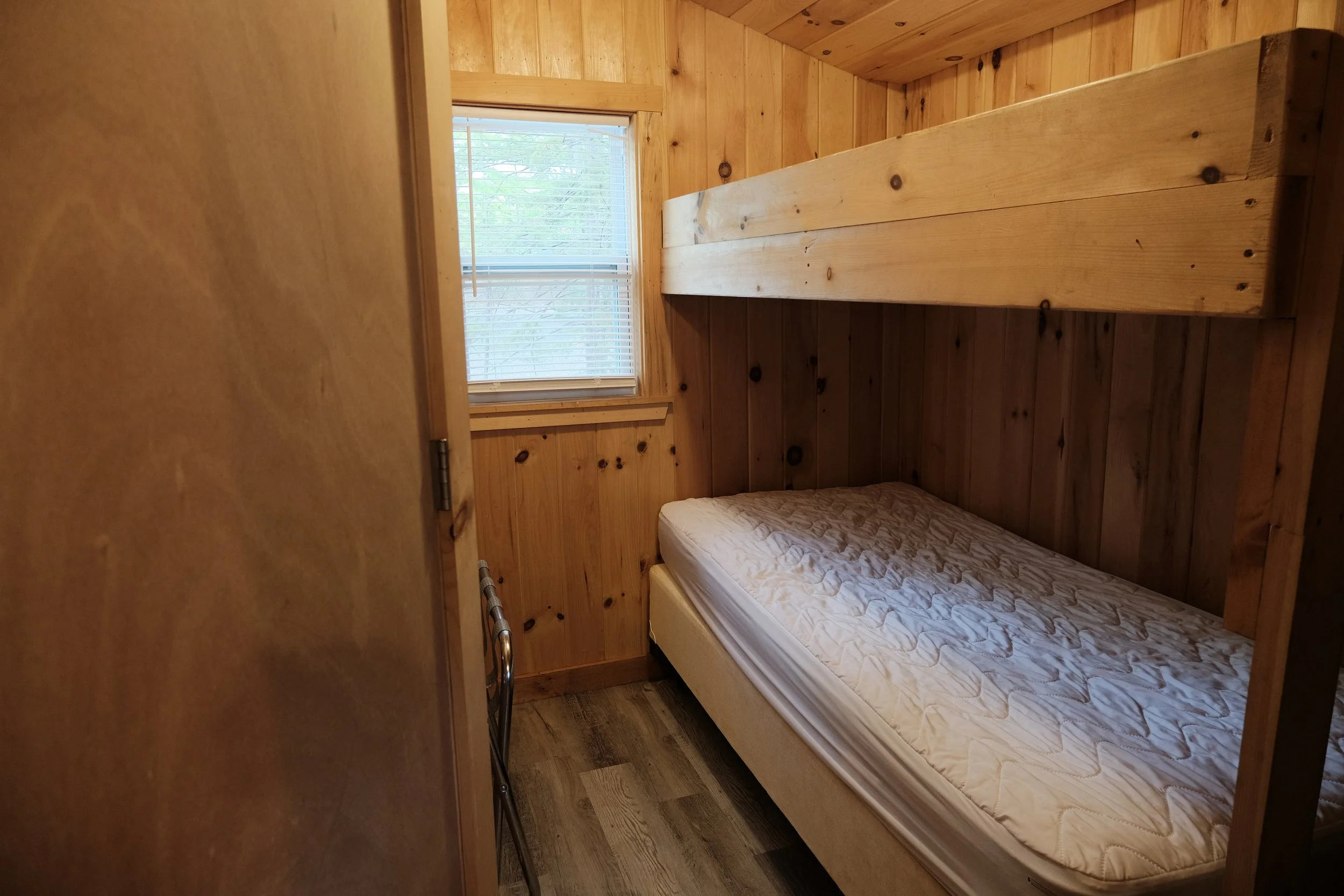 The Snowflake Cabin is a cozy retreat offering comfortable accommodations for guests. It features a Queen bed and bunk beds, along with a private bath that includes a shower. The cabin is equipped with a heat/air combo unit to ensure a pleasant temperature all year round. For convenience, it includes a small refrigerator and microwave, as well as a small table inside. The cabin does not allow pets. Essential amenities such as electricity, sewer, and water are provided.